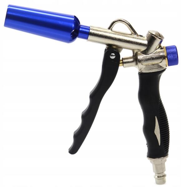 Fúvópisztoly Venturi-fúvókával Fúvópisztoly Venturi-fúvókával sokkal hatékonyan használja fel a bevezetett levegőt, mint a klasszikus fúvópisztoly, így nagy felületek tiszítására is használható. A pisztoly légáram-szabályozással van ellátva. A csomagolás 3 fúvókát tartalmaz Venturit, rövidet és hosszút.