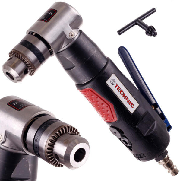 PNEUMATIKUS SZÖLDFÚRÓ ▶ ️ Kulcsos tokmány 1,5 és 10 mm közötti fúrószárakhoz ▶ ️ Fejmagasság 95 mm Kiváló minőségű pneumatikus szögfúró, amely ideális a nehezen hozzáférhető helyeken végzett munkákhoz. A mindössze 95 mm-es kompakt fejmagassága könnyű használatot és pontosságot biztosít még szűk helyeken is. A fúrógép 1,5 mm és 10 mm közötti átmérőjű fúrószerszámokat támogat A fúrógép kulcsos fúrótokmányt tartalmaz, amely garantálja a szerszám biztonságos és biztos rögzítését, ami stabil munkát és nagyobb fúrási pontosságot eredményez. A termék előnyei: Kompakt méret - ideális szűk helyeken történő munkavégzéshez Robusztus kialakítás a tartósság és a hosszú szerszám élettartam érdekében Kulcsos tokmány a fúrószár biztonságos rögzítéséhez Műszaki adatok: Működési nyomás: Nyomás: 6,3 bar Levegőfogyasztás: 6,3 bar: Fúrószár: 1,5-10 mm Levegőcsatlakozás: 1/4" menet. Gyorscsatlakozó dugó mellékelve. Teljes hossz - 21 cm Teljes magasság a fúrófejjel együtt - 9,5 cm